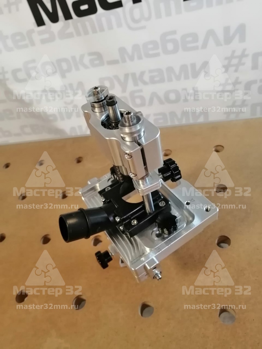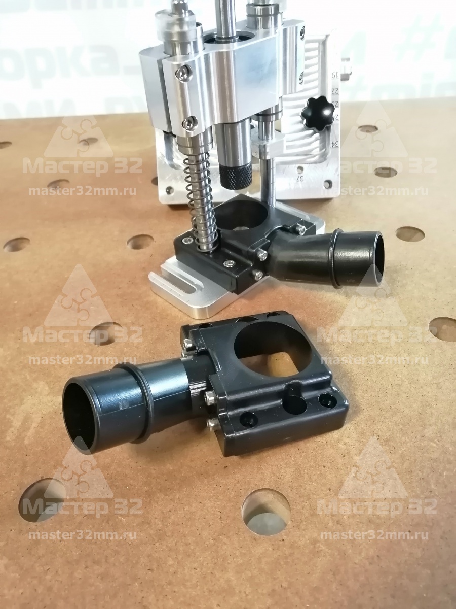 Система пылеудаления на фрезерный кондуктор позволяет комфортно работать сверлами Форстнера с полным удалением стружки из зоны резания.