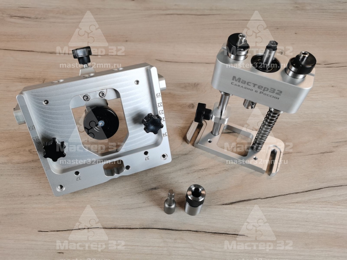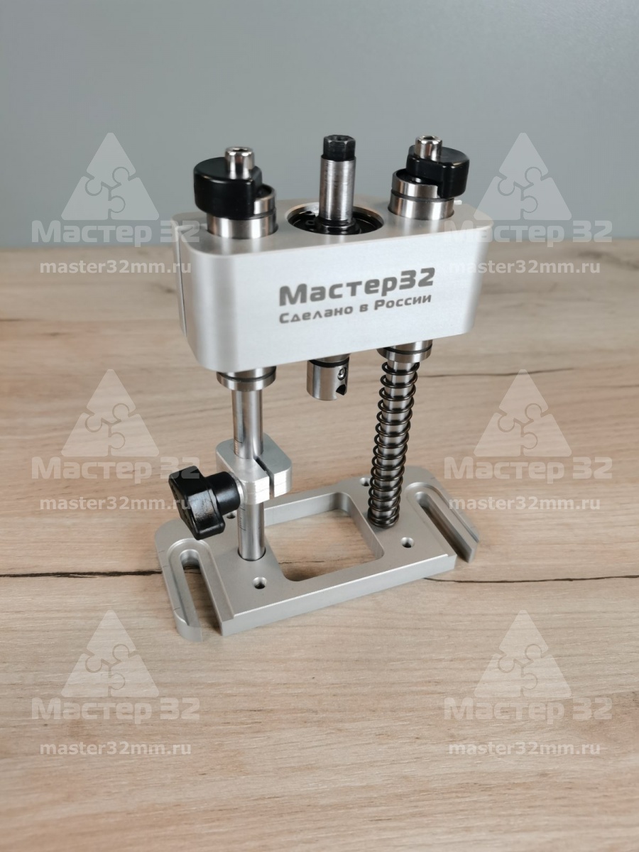 Фрезерный кондуктор Мастер 32 предназначен для совместной работы станочными (Профессиональными) сверлами Форстнера диаметром до 35 мм.